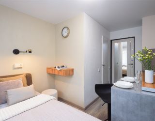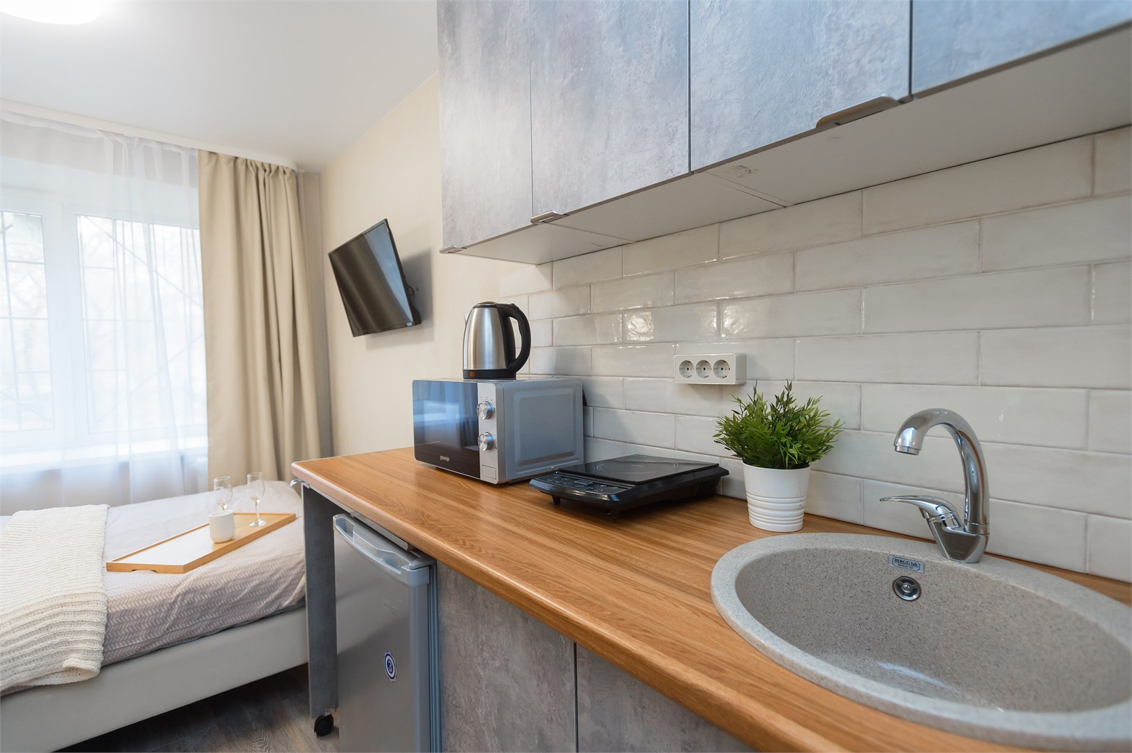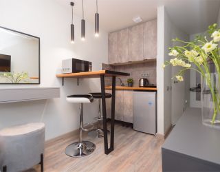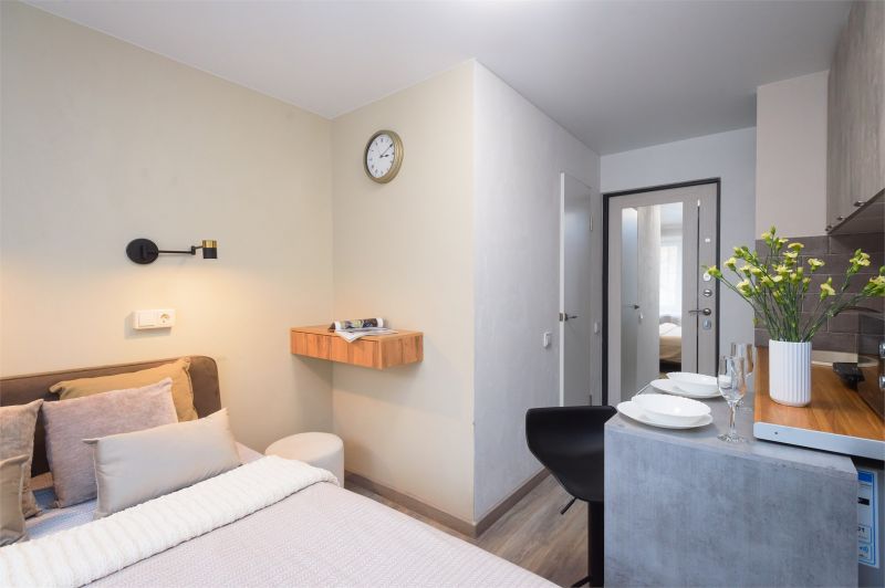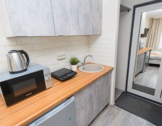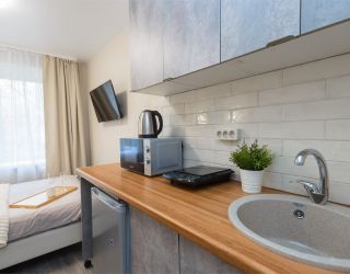 Поездом до ж/д вокзала г. Екатеринбург (Екатеринбург-Пассажирский), далее на автобусе №48 (87) до остановки «Площадь Коммунаров», далее 199 м до апартаментов.